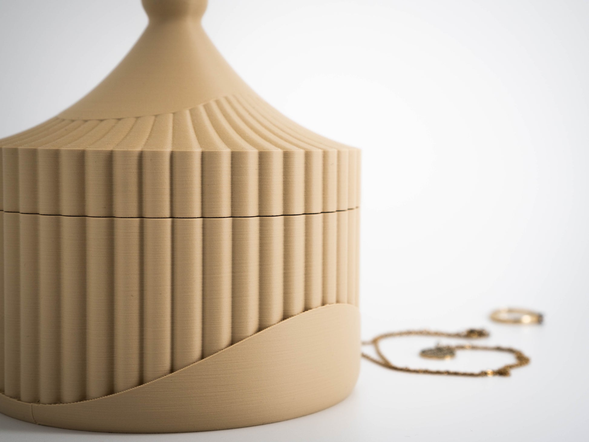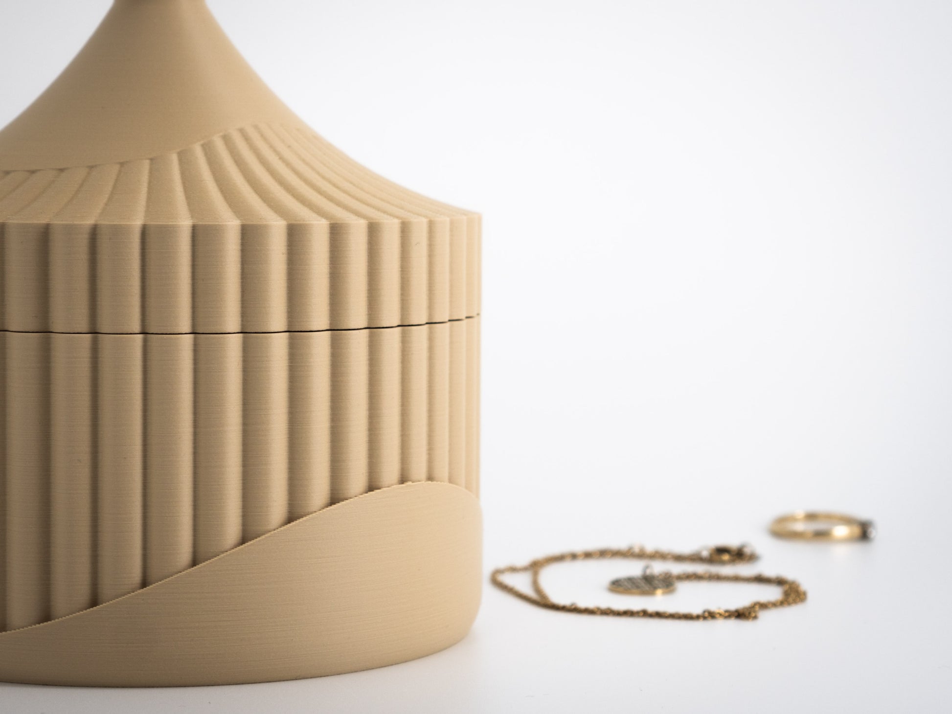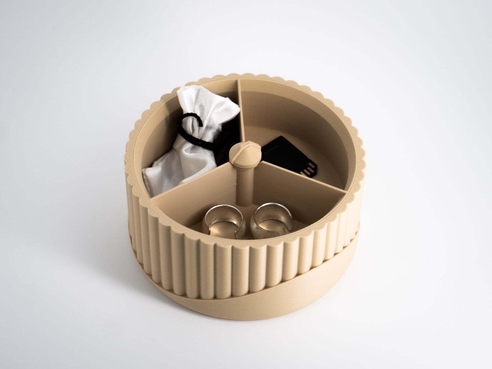 Die Schmuckbox Aureli vereint edles Design mit praktischer Funktionalität und bietet Ihren wertvollen Schätzen ein stilvolles Zuhause. Mit ihrer anmutigen Form und fein gearbeiteten Details wird sie zu einem wahren Schmuckstück, das auf jeder Kommode glänzt. Das hochwertige, langlebige Material sorgt für Schutz und Stabilität, während die sorgfältig gestalteten Innenfächer eine perfekte Organisation Ihrer Lieblingsstücke ermöglichen. Ob Ringe, Ketten oder Ohrringe – die Schmuckbox Aureli bewahrt alles sicher und griffbereit auf. Ihr zeitlos elegantes Design macht sie nicht nur zu einem praktischen Accessoire, sondern auch zu einem dekorativen Highlight. Die perfekte Mischung aus Stil und Funktion für alle, die Wert auf Schönheit und Ordnung legen.